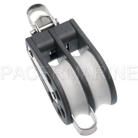 A strong, lightweight range of blocks for use on dinghies and day boats or as lead blocks on a larger craft. With a plain bearing block with a precision molded Acetal sheave running on a large diameter brass bearing, ensuring free running under the highest of loads. Featuring a removable shackle that can be set in line or at 90° to the sheave and becket.