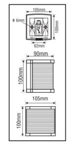 CLASSIC 20 Bi-color Light 12v Navigation Light  Approved for vessels up to 20 m.  Both sets are made of UV stabilized ABS plastic, with the shatter-proof acrylic lens, Non-magnetic stainless steel electrical contact, and a nitrile water resistant seal to provide reliable long life. DIMENSIONS Overall Dimensions – H-105 x W-100 mm Base Size 105mm x 100mm Hole Centres 62mm CE APPROVED