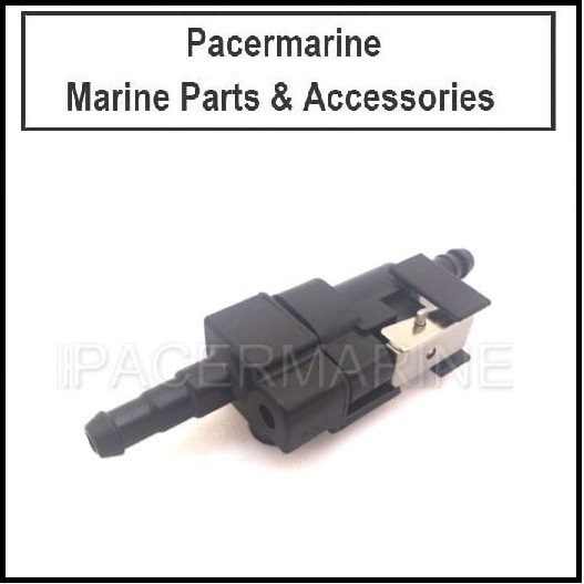 Genuine Suzuki outboard pan fuel line connector and fuel line engine end fitting with a 5/16″ hose barb attachment.