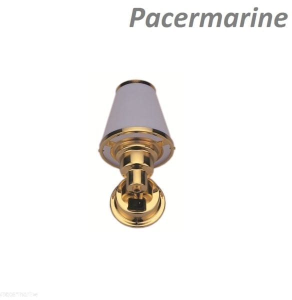 Lacquered brass Interior Cabin Light Product Price £24.95 Lacquered brass Interior Cabin Light quantity Add to cart SKU: MMS-771 Weight: .3 kg Product Description 70mm lacquered brass base, white,  plastic shade, 12V 10W bulb DIMENSIONS Overall fixing Diameter –  65mm << return to products
