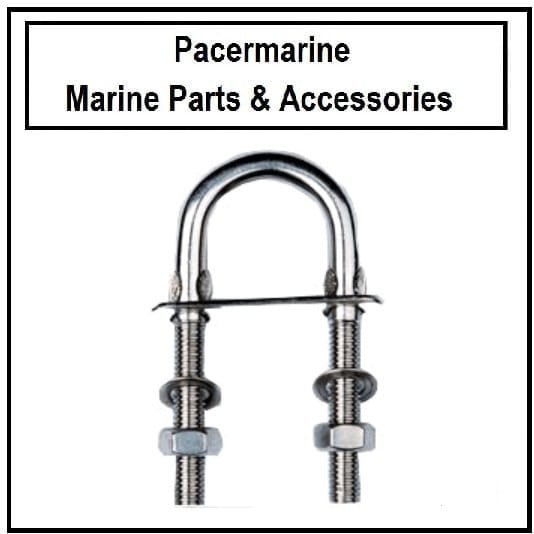 Stainless Steel (AISI316) U-Bolt features loose plates and nuts. 8 mm diameter x 80 mm total length